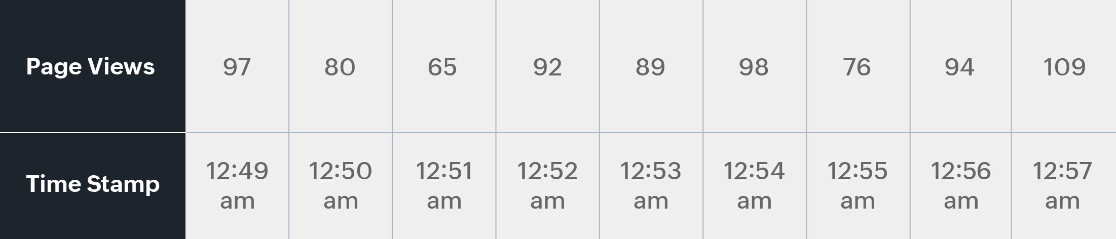 If the page view count recorded during any polling interval within a 10-minute timeframe is more than a predefined threshold, like 100, a Trouble alert is sent to users.