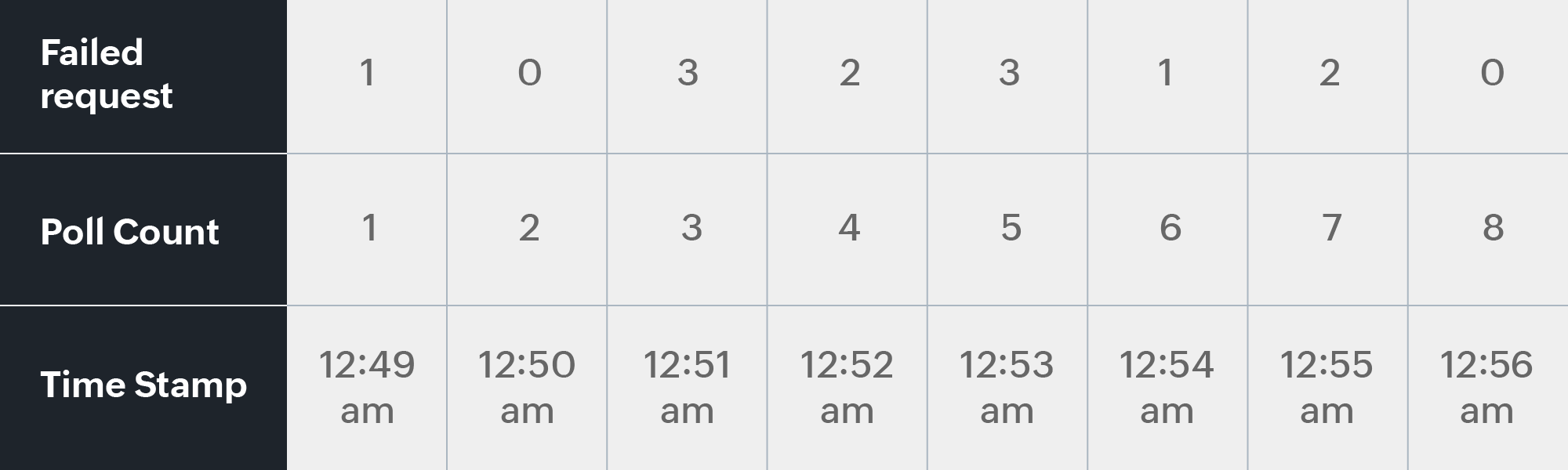 By the end of the eighth poll, a Trouble alert is sent to the user.