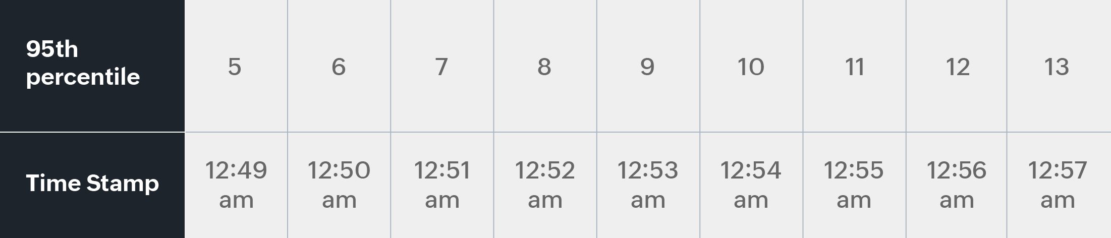 The 95th percentile in the sixth minute is 10. So, a Trouble alert is sent to the user.