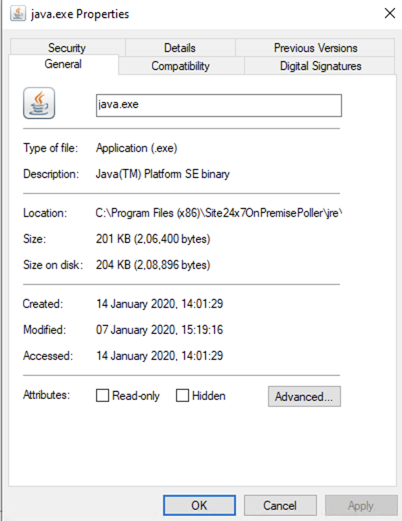 6. 保存先がC:\Program Files (x86)\Site24x7OnPremisePoller\jre\binかどうか確認します。
