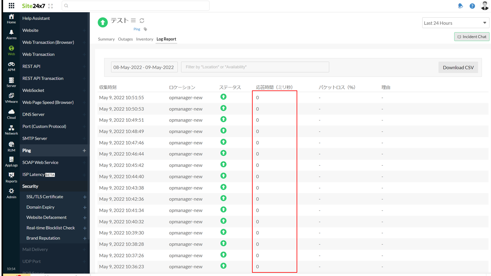 Ping監視で応答時間のグラフやログレポートで、0ミリ秒と表示される理由について紹介します。