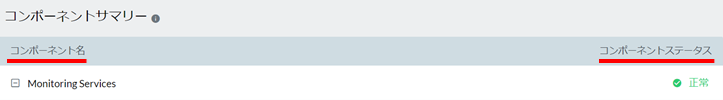 ステータスページは「コンポーネント」と「ステータス」により稼働状況を表示します。