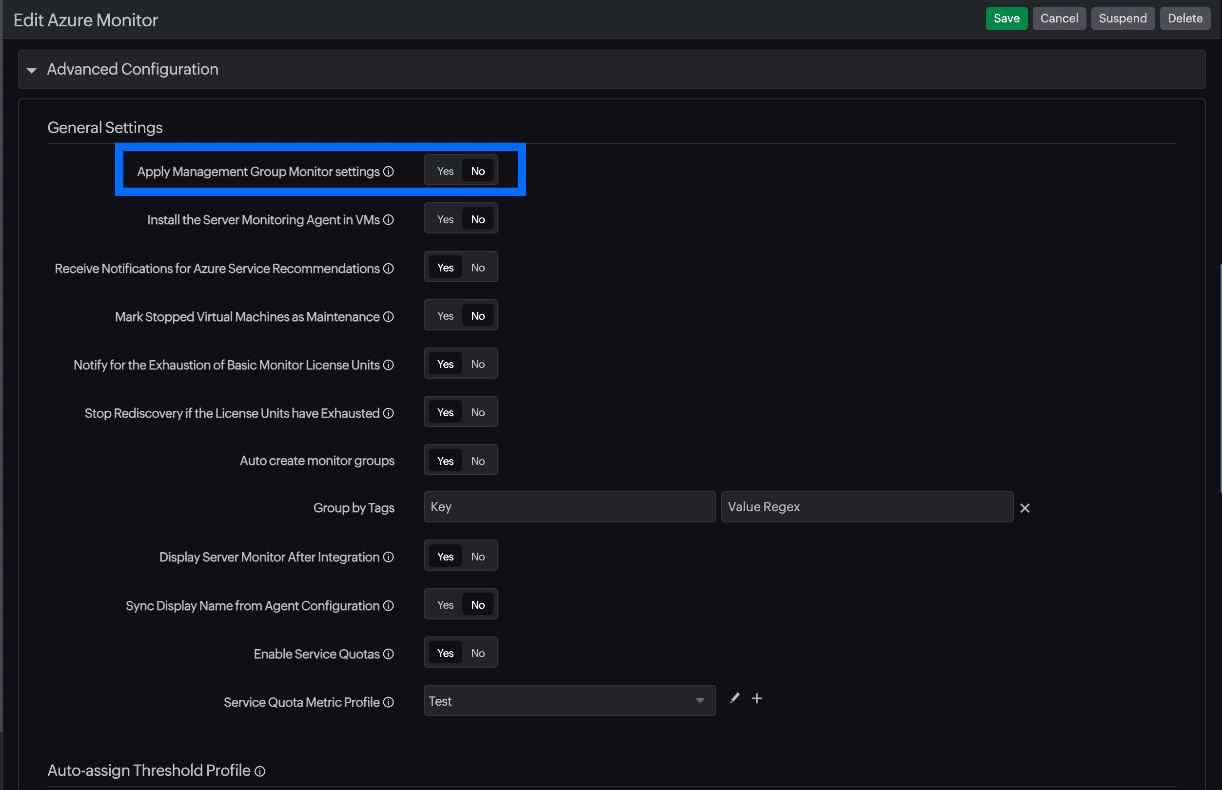 Now, the current settings preferences will be applied only to this subscription monitor, and any changes made to the management group monitor will not affect this subscription.