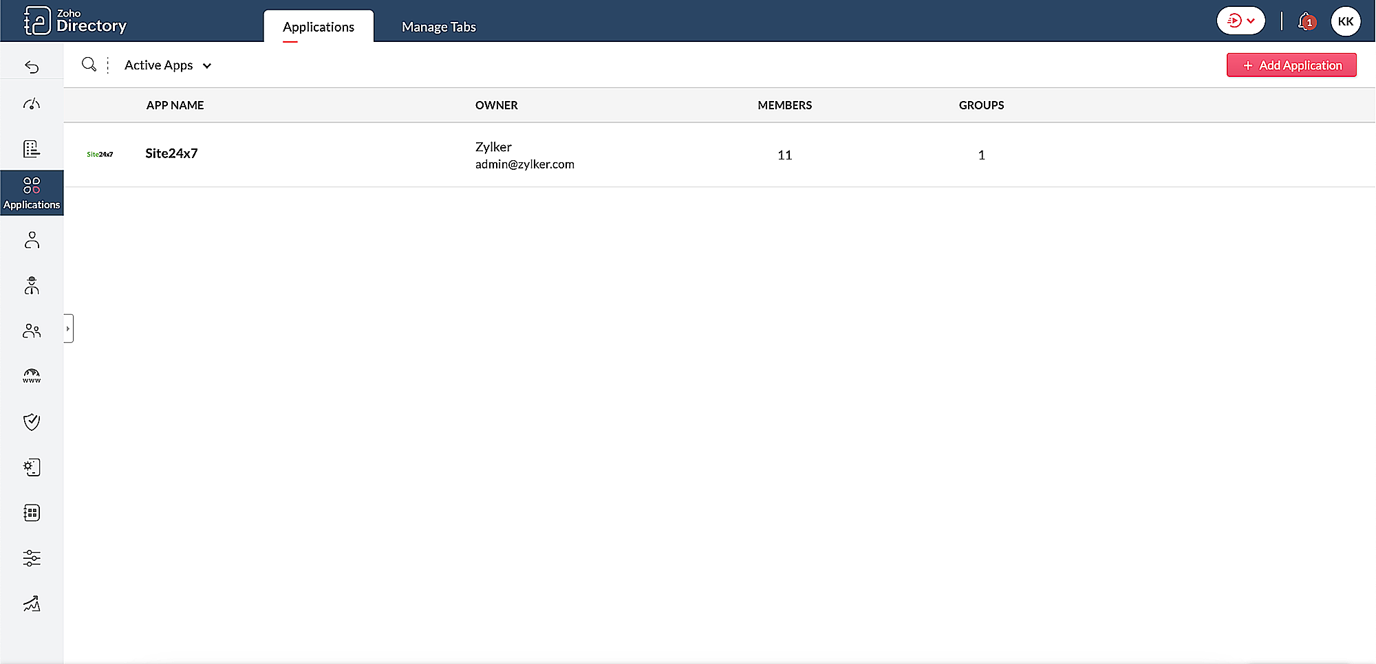1. In Zoho Directory, go to the Applications tab on the left side.