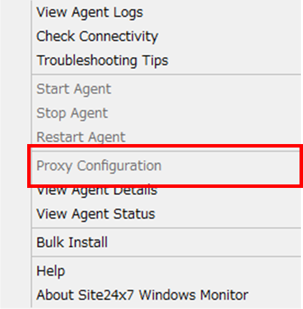 - プロキシ設定を変更したら、Site24x7監視エージェントサービスを再起動してください。