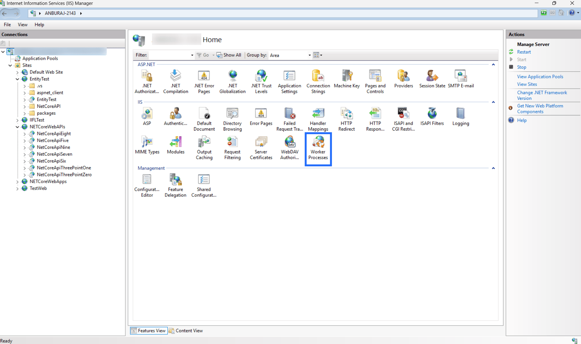 Once the application starts serving requests, it should appear under Worker Processes, the APM Insight agent should begin capturing data, and the monitor should appear in the Site24x7 portal.