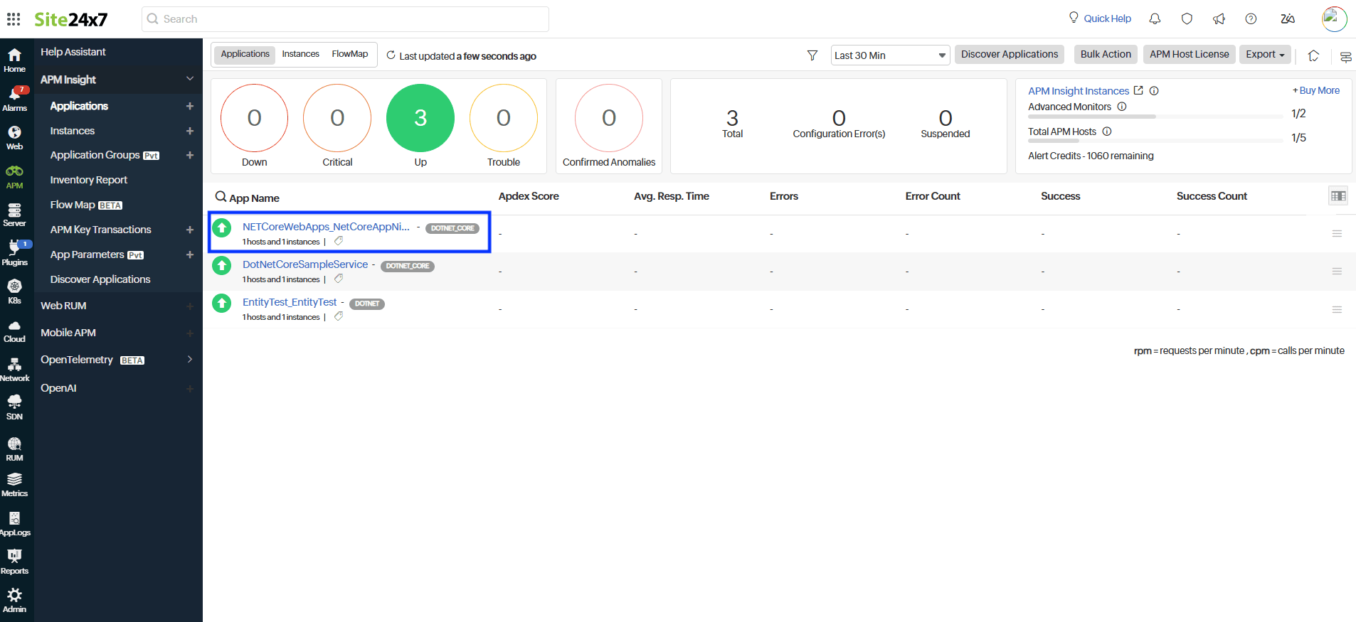 When using APM Insight to monitor .NET applications, it's crucial to ensure the application is both actively running and correctly configured for monitoring. Here's how you can verify that using Site24x7 and Windows tools: