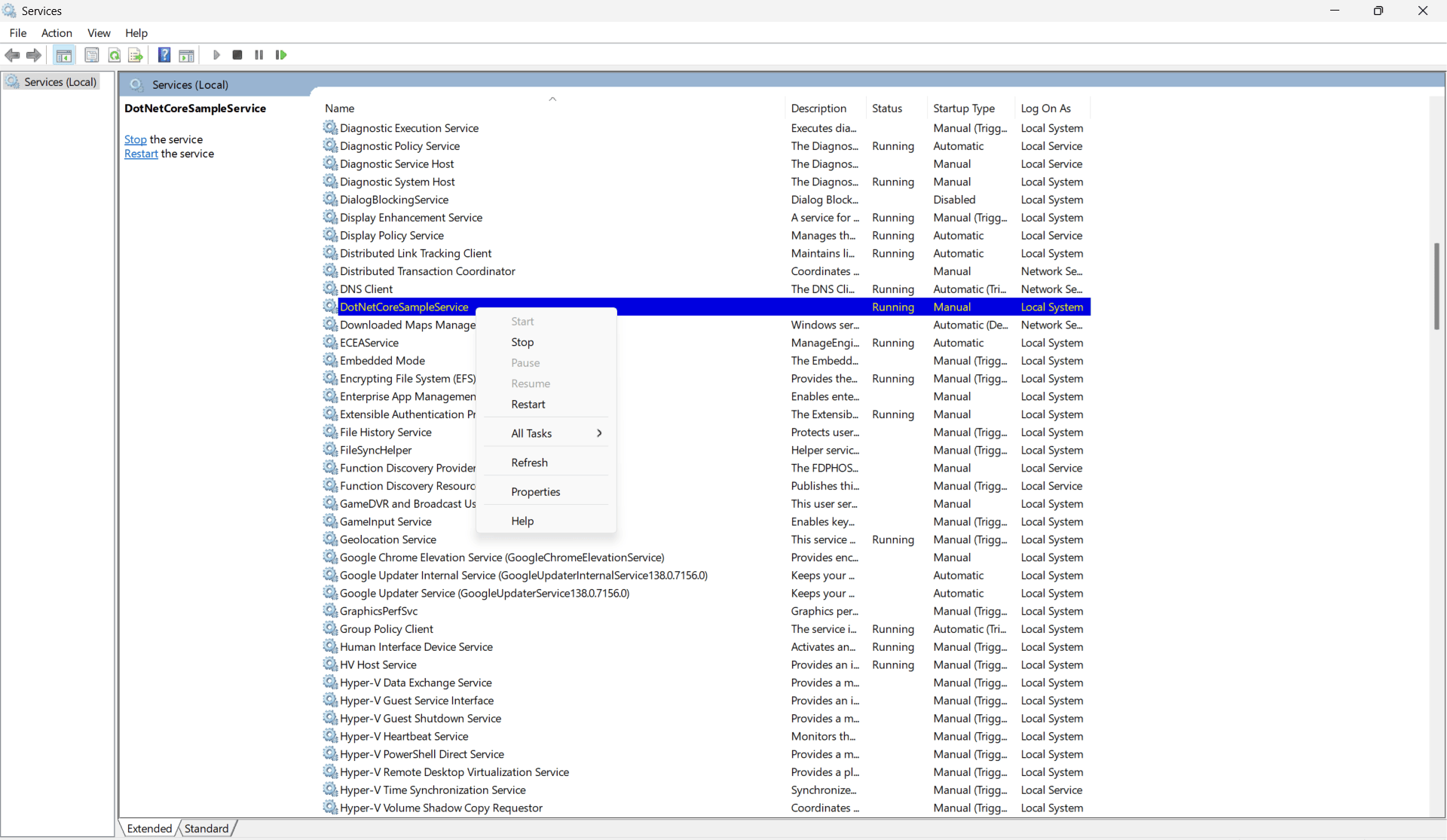 Search for the Windows service related to your application, right-click it, and select Restart or Start.