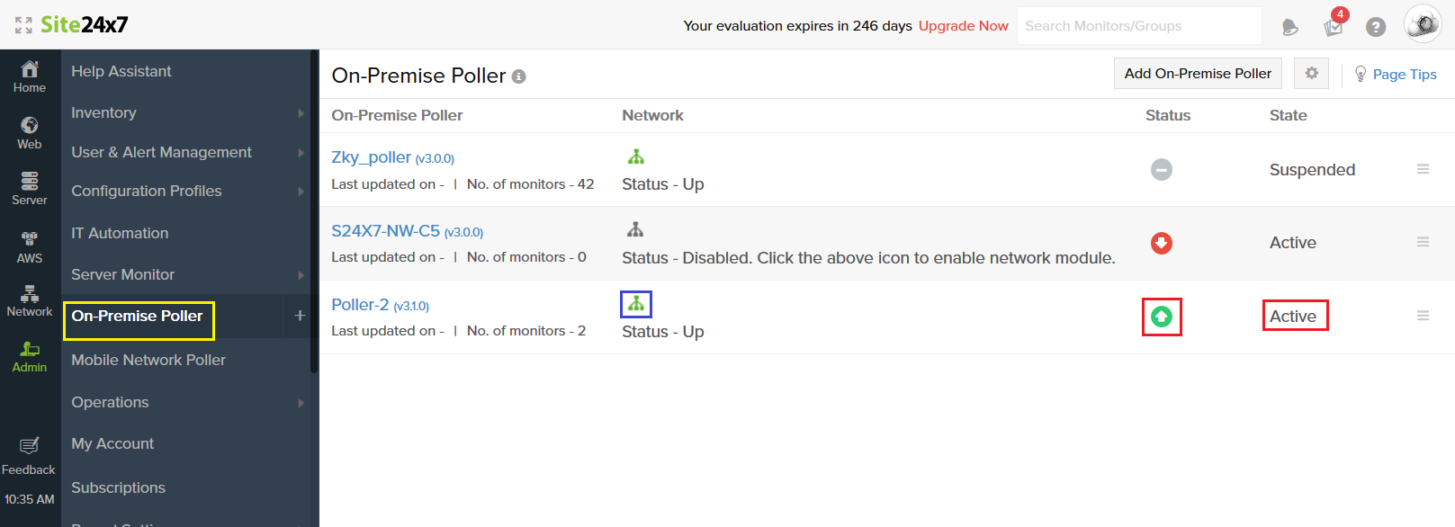 1. [管理]→[オンプレミスポーラー]にアクセスし、オンプレミスポーラーがアクティブとなっているかを確認します。停止状態の場合はアクティブ化してください。