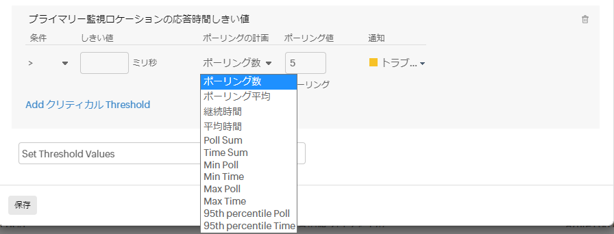 しきい値プロファイルのポーリングの計画にある「ポーリング数」などのポーリングによる計画と、「継続時間」などの期間による計画の使い分けについて記載します。